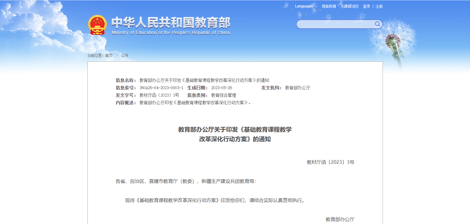 為貫徹黨的二十大精神,落實立德樹人根本任務,辦好人民滿意的教育,教育部決定推進實施“基礎教育課程教學改革深化行動”,制定本行動方案。