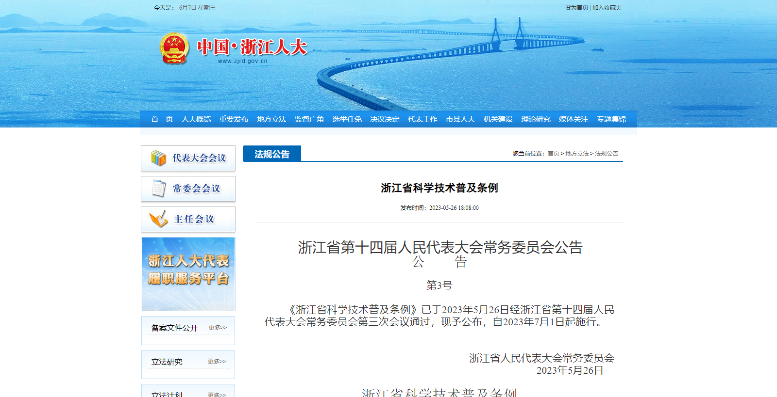 近日,《浙江省科學(xué)技術(shù)普及條例》經(jīng)浙江省第十四屆人民代表大會(huì)常務(wù)委員會(huì)第三次會(huì)議通過(guò),自2023年7月1日起施行。《條例》對(duì)科普資源規(guī)劃、活動(dòng)舉辦、人才隊(duì)伍建設(shè)等內(nèi)容都作了明確規(guī)定,機(jī)關(guān)、團(tuán)體、企事業(yè)單位、大中小學(xué)都有新任務(wù)了!一起來(lái)看↓↓