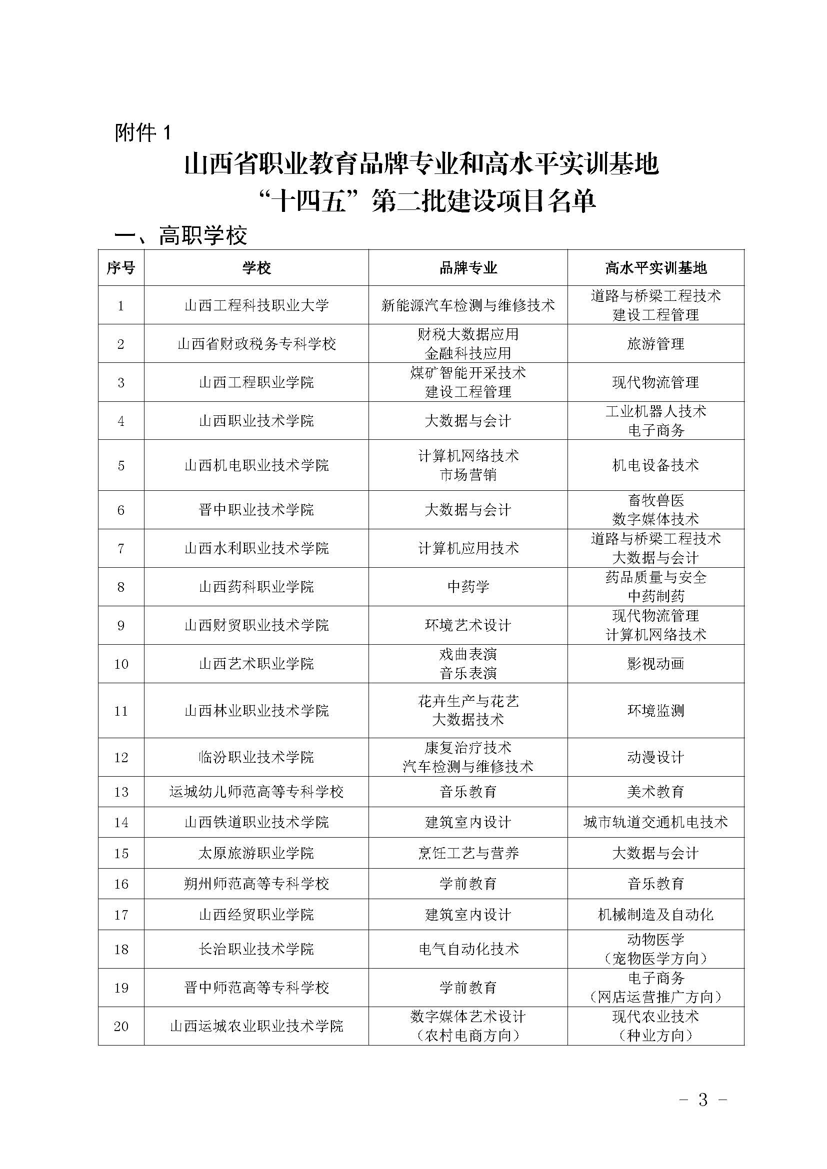 近日,山西省教育廳公布山西省職業(yè)教育品牌專業(yè)和高水平實訓基地“十四五”第二批建設(shè)項目名單的通知,高職學校38所,中職學校71所,10個自籌項目。
