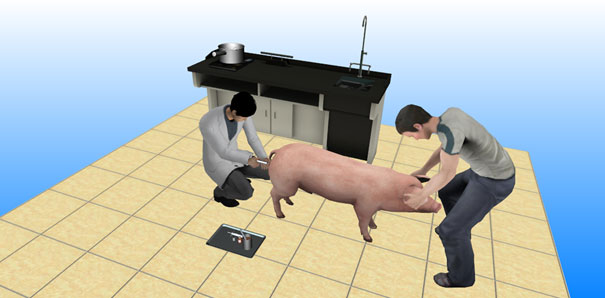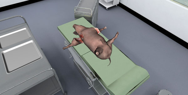按照動物真實的尺寸,提供仿真三維模型,展示動物體表與內(nèi)部器官真實結(jié)構(gòu),讓學生能清楚知道各主要臟器在動物體內(nèi)的大致位置。以3D的形式來展現(xiàn)動物解剖的工作場景,有效解決了實際操作中的解剖成本高、損耗大等一系列問題。