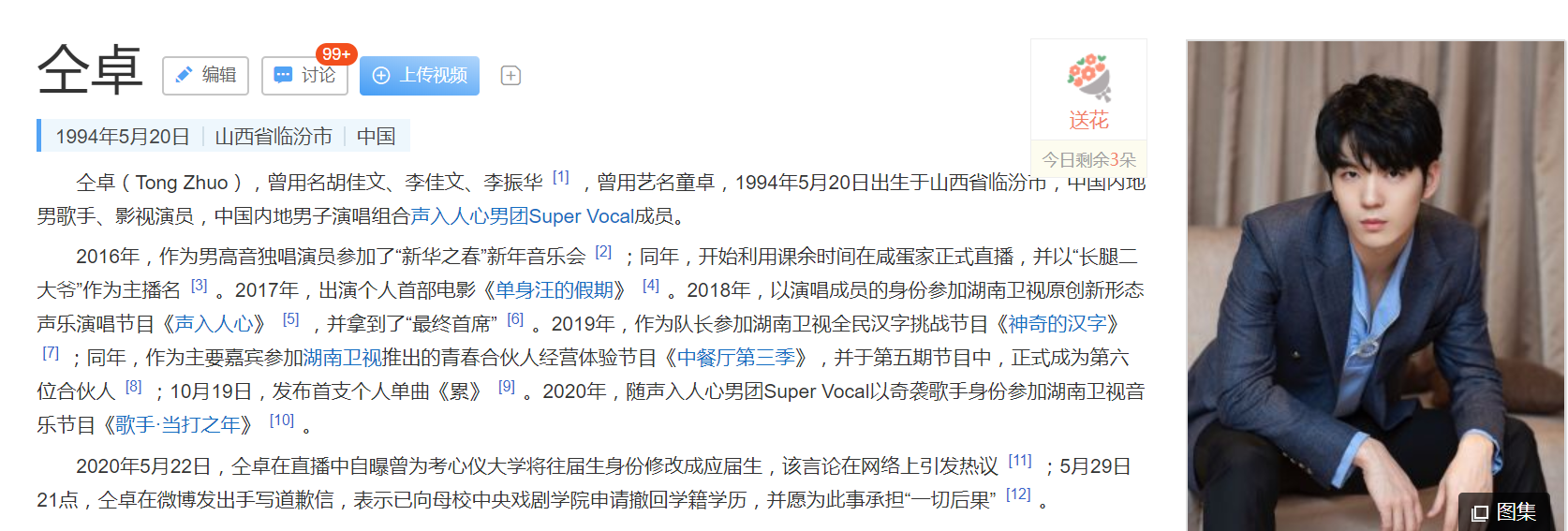 仝卓(Tong Zhuo),曾用名胡佳文、李佳文、李振華 ,曾用藝名童卓,1994年5月20日出生于山西省臨汾市,中國內(nèi)地男歌手、影視演員,中國內(nèi)地男子演唱組合聲入人心男團Super Vocal成員。