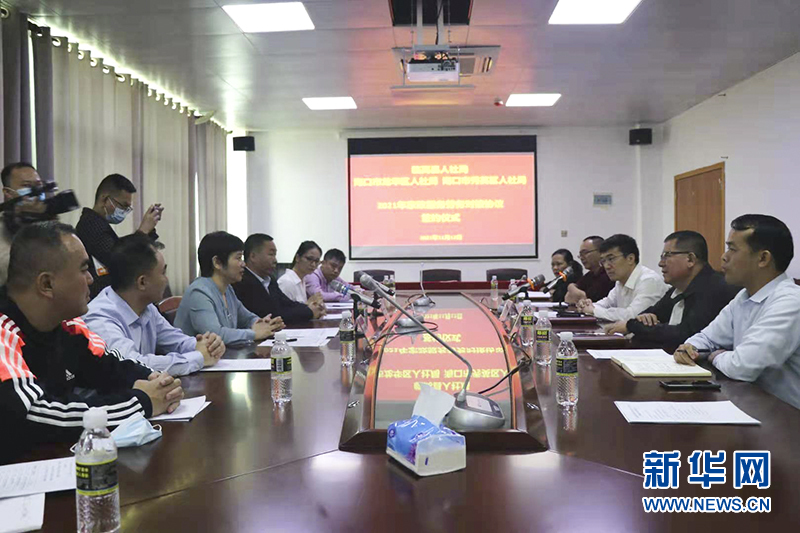 11月12日上午,海南省臨高縣和??谑旋埲A區(qū)、秀英區(qū)舉辦共建家政行業(yè)發(fā)展簽約儀式。新華網(wǎng)發(fā)